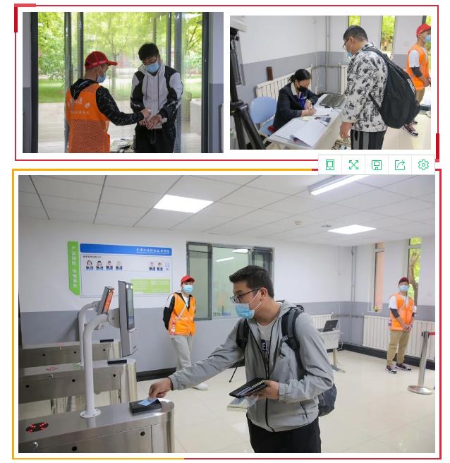 5月23日,學生期盼返校的一天終于到來。早6:50我們迎來第一位返校學生。隨著“同學,請出示健康碼、身份證”、“請進入測溫門測溫并進行行李消毒”、“請掃描津門戰疫碼”,一句句溫馨提示,讓返校同學一到家門,便被“ 愛的潮水 ”包圍。大家在學生骨干志愿者熱情幫助下,在黨員突擊隊老師親切問候下,滿載幸福地回到校園,開啟新生活。