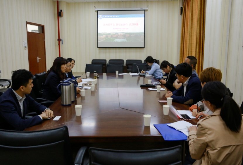 河北省漢沽管理區人社局人才中心,河北新美制冷設備有限公司,河北恒雪制冷設備有限公司,天津亞通制冷設備股份有限公司,倫登風機科技(天津)有限公司的企業領導等出席會議。機械學院黨支部趙春梅書記,紀紅院長,李欣副院長,專業負責人以及機械學院相關人員參加會議,共聚一堂,交流經驗,共同探討校企合作的新模式。