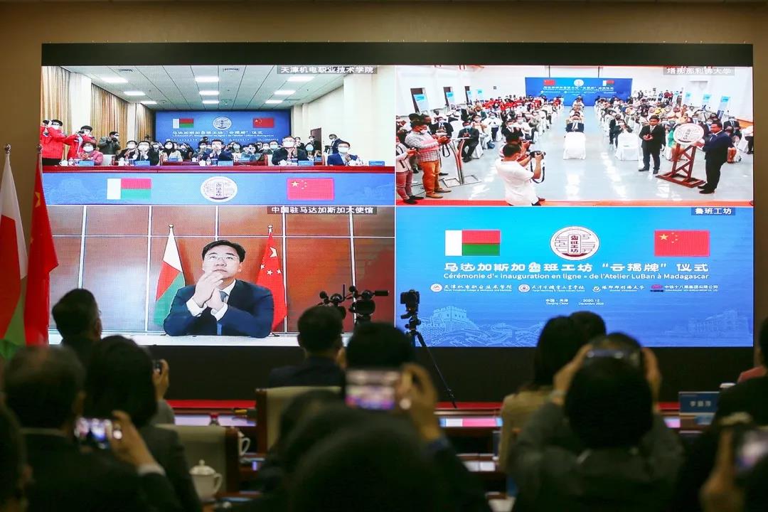 12月22日,馬達加斯加魯班工坊“云揭牌”儀式在天津機電職業技術學院和馬達加斯加塔那那利佛大學線上線下同步舉行。