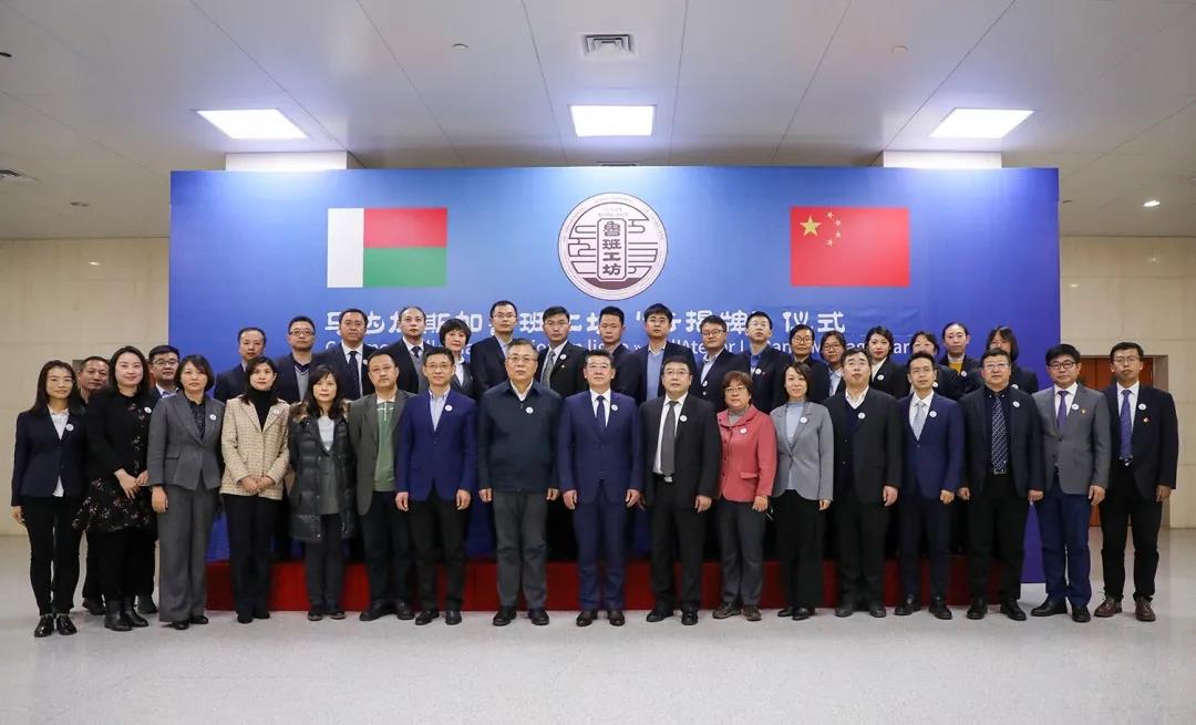 馬達加斯加總統項目局局長奧古斯丁、塔那那利佛大學校長馬米-拉烏爾·拉韋洛馬納納為魯班工坊共同揭牌。
