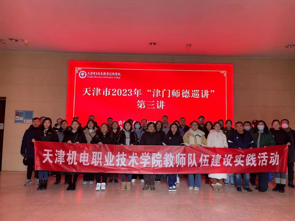 2023年12月27日,2023年天津市“津門師德巡講”系列活動第三講報告會在天津電子信息職業技術學院舉辦,我校黨委副書記、紀委書記馬薇同志帶領學校黨委教師工作部工作人員、教師代表和2023年新入職教師代表聆聽了本次報告會。
